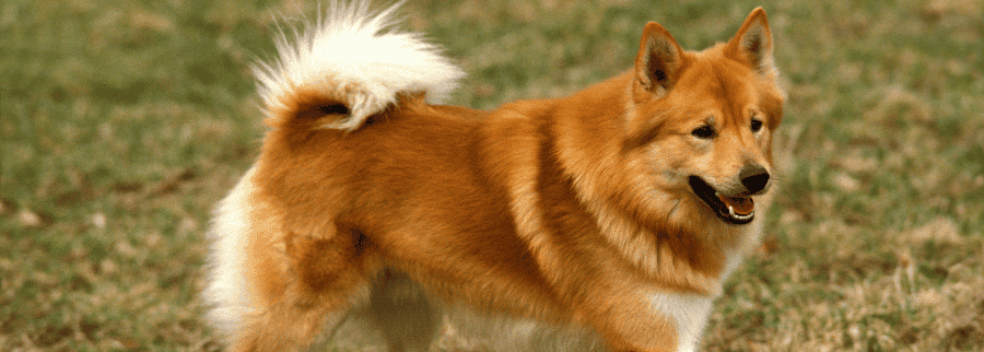 Iceland’s only native dog breed is a friendly and faithful herder. Icelandic Sheepdogs are one of the 50 or so Northern breeds from around the world classified as Spitzes. The breed’s “spitziness” is expressed by a dense coat, foxy face, pointed ears, and a bushy, curling tail. They are friendly and happy dogs and they come in several predominant colors, always accompanied by white markings.