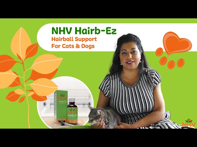 Hairb-Ez helps to dissolve ingested hairballs. It contains a gentle laxative herb as well as herbs that help relieve discomfort and bloating. Read how NHV Hairb-Ez helped Tatiana the kitty who had terrible bouts of hairballs until NHV Hairb-Ez.